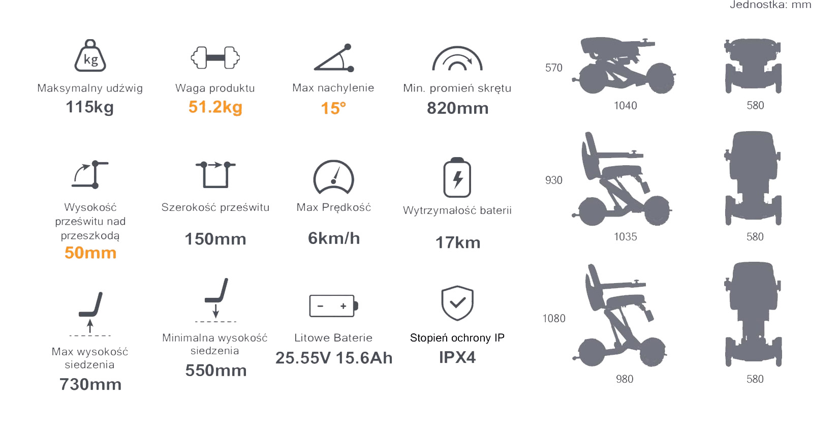 Nieożliwia pełną swobodę poruszania się przez cały dzień. Oznacza to brak potrzeby częstego ładowania i pewność, że możesz cieszyć się niezależnością przez długi czas. Bateria jest szybka w ładowaniu, co pozwala na minimalne przestoje.