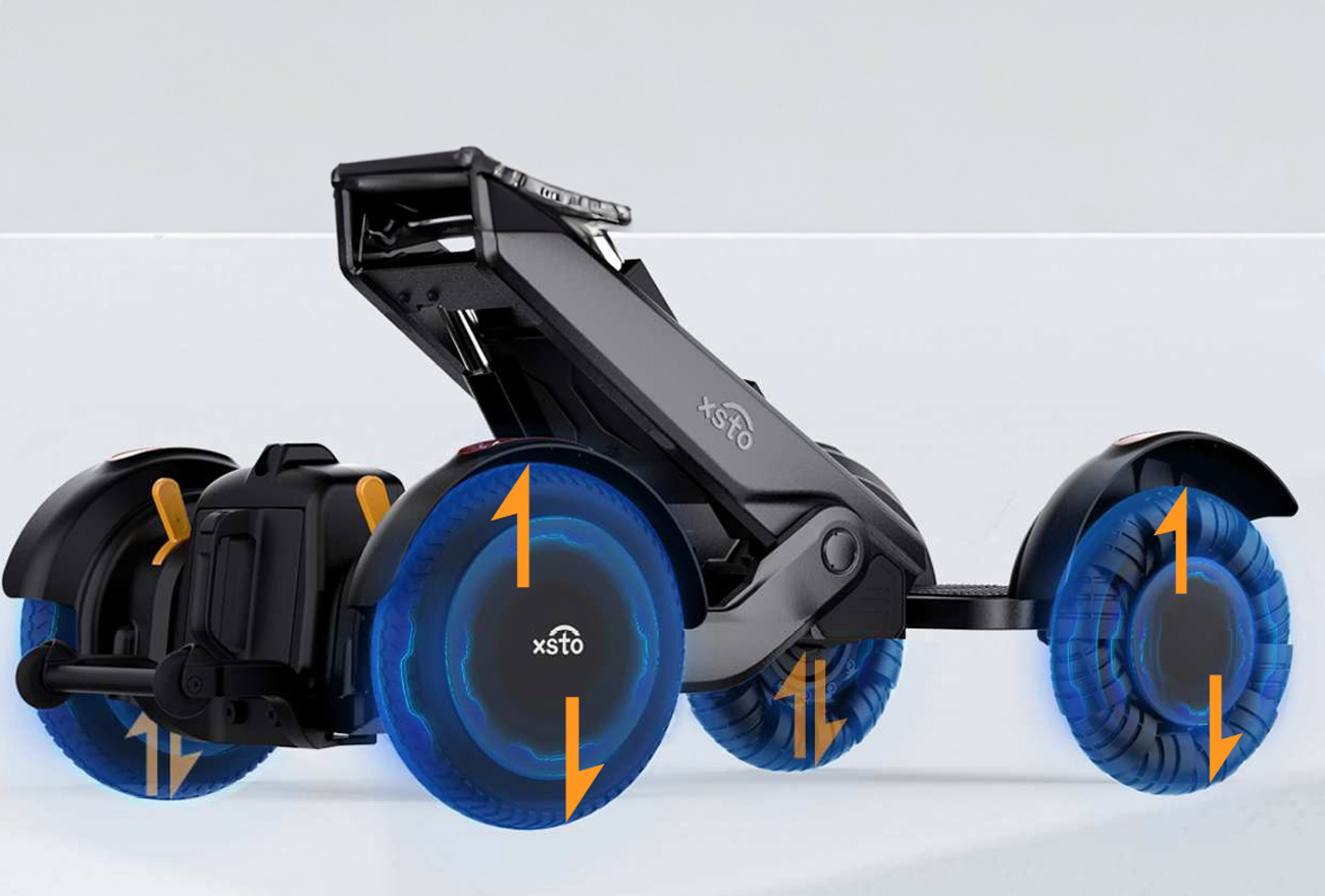 Niezależne zawieszenie czterech kół klasy samochodowej Absorbuje uderzenia z drogi, poprawia przyczepność kół do podłoża i zwiększa stabilność jazdy. Zawieszenie jest niezależne od siebie, a lewe i prawe koło nie kolidują ze sobą, co zmniejsza przechył nadwozia i wibracje oraz optymalizuje wrażenia z jazdy.