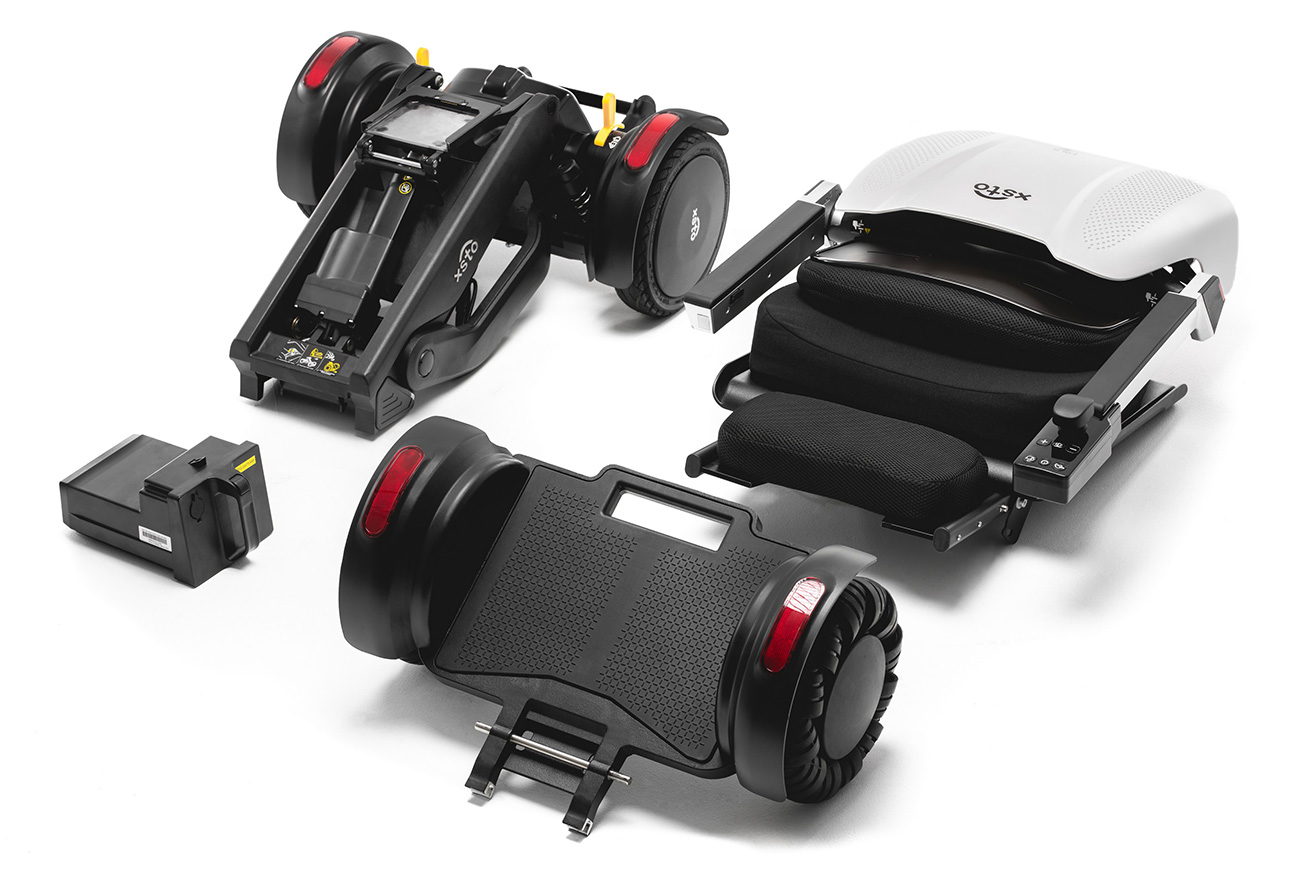 Dzięki funkcji elektrycznego składania, XSTO M4 można szybko i wygodnie złożyć do kompaktowych rozmiarów, co ułatwia jego przechowywanie. Lekka, składana konstrukcja sprawia, że jest idealnym rozwiązaniem dla osób, które często podróżują lub mają ograniczoną przestrzeń w domu. Możliwość rozłożenia wózka na 3 części sprawia, że jego transport nie wymaga użycia większej siły.